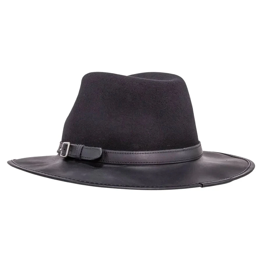 One of our newest additions to the American Outback Hat Collection, the Summit Felt Leather Fedora Hat boasts a timeless, classic look. Made from luxurious full grain American cowhide leathers and beautiful felt.
