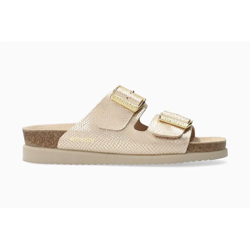 MEPHISTO HESTER | Women Cork Sandals Beige Leather Mosaic Print. This lightweight mule is a must for a relaxed summer. The unique SOFT-AIR technology, integrated in the cork midsole, guarantees an effortless walk. The AIR-RELAX technology respects the anatomy of the foot to prevent fallen arches. Adjustable straps with buckle fastening.