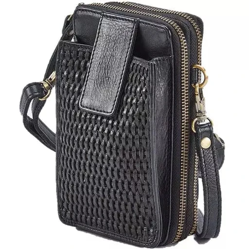 Size: 18x10x4 One of the best seller cross body bags wallets. Tie on your waist while cycling. Made of washed leather with micro weaving design at the front. Looks very elegant. Consists of; An external iPhone pouch with a flap | Chain all over| 12 Credit card slots| ‘3’ pockets for documents / notes & bills | Coins| 2nd Secured pocket for important doc/coins.