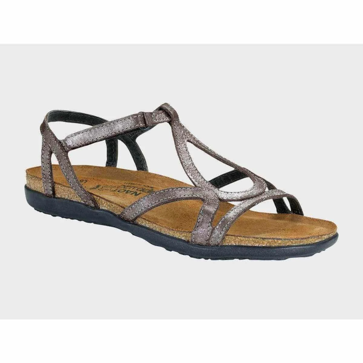 The Dorith is gladiator inspired sandal with a hook & loop strap and backstrap for added stability and support. The Dorith has a feminine design at the front. Naot’s anatomic cork & latex footbed is wrapped in a pampering suede and molds to the shape of the foot with wear. The Flat Elegant Collection features a .75″ TPR sole.