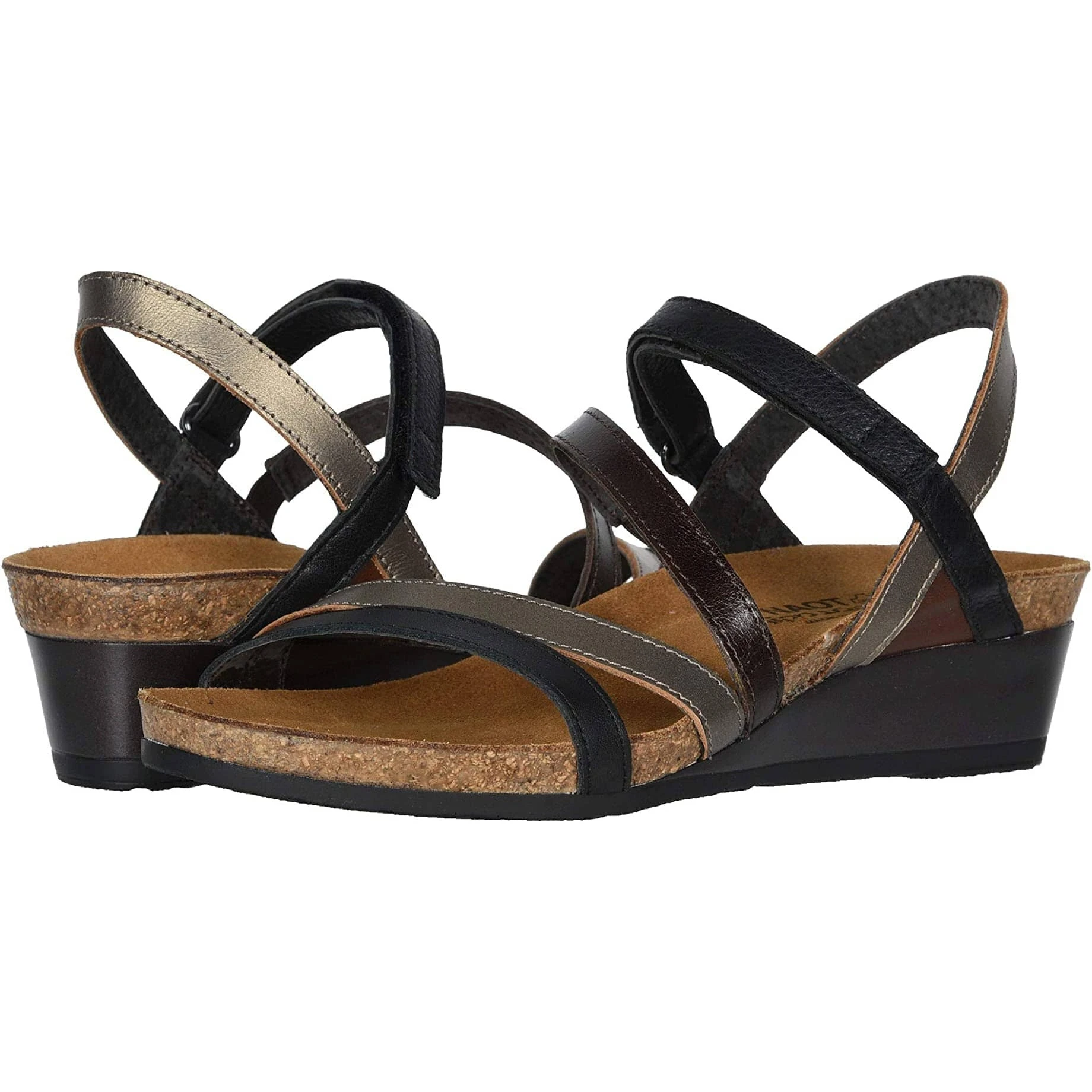 The Hero wedge is offered in a multitude of fun, colorful hues and can be dressed up or down. A gore strap at the back and just below the instep allows for ease of wear while a hook and look closure at the instep allows for easy on/off. Leather lining allows for extra comfort while Naot’s anatomic cork & latex footbed is wrapped in a pampering suede and molds to the shape of the foot with wear.