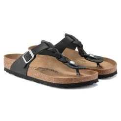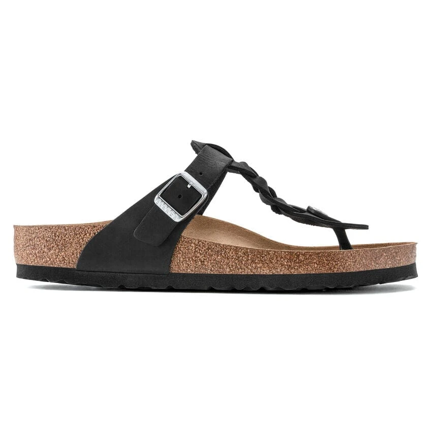 The BIRKENSTOCK Gizeh brings legendary comfort and boho-inspired braiding to the thong sandal. Featuring oiled leather for a unique, lived-in look. Complete with classic BIRKENSTOCK design elements, like a contoured cork-latex footbed for the ultimate in all-day support.