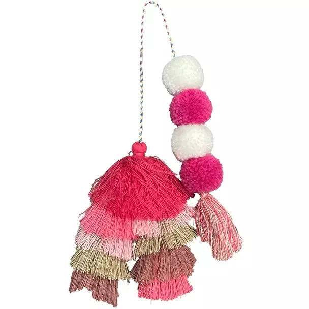 Bogg Bag Bogg Bauble – Pink Straw Double Tassel