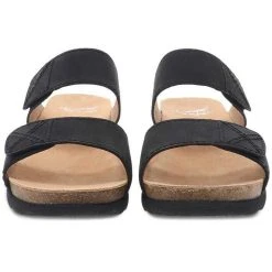 Add the open-back double strap Maddy slide to your summer wardrobe, and you may never take it off. This fully adjustable wedge sandal features hook and loop closures on both straps, a lightweight cork midsole and an EVA outsole. Leather uppers and a leather outsole wrap dresses this sandal up for any occasion.