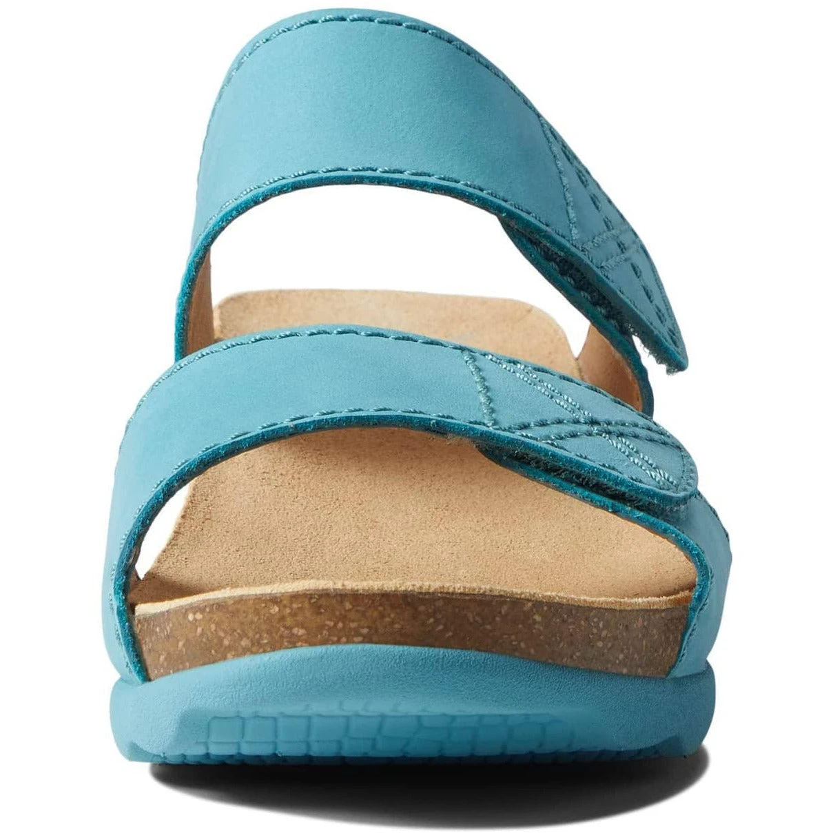 Add the open-back double strap Maddy slide to your summer wardrobe, and you may never take it off. This fully adjustable wedge sandal features hook and loop closures on both straps, a lightweight cork midsole and an EVA outsole. Leather uppers and a leather outsole wrap dresses this sandal up for any occasion.