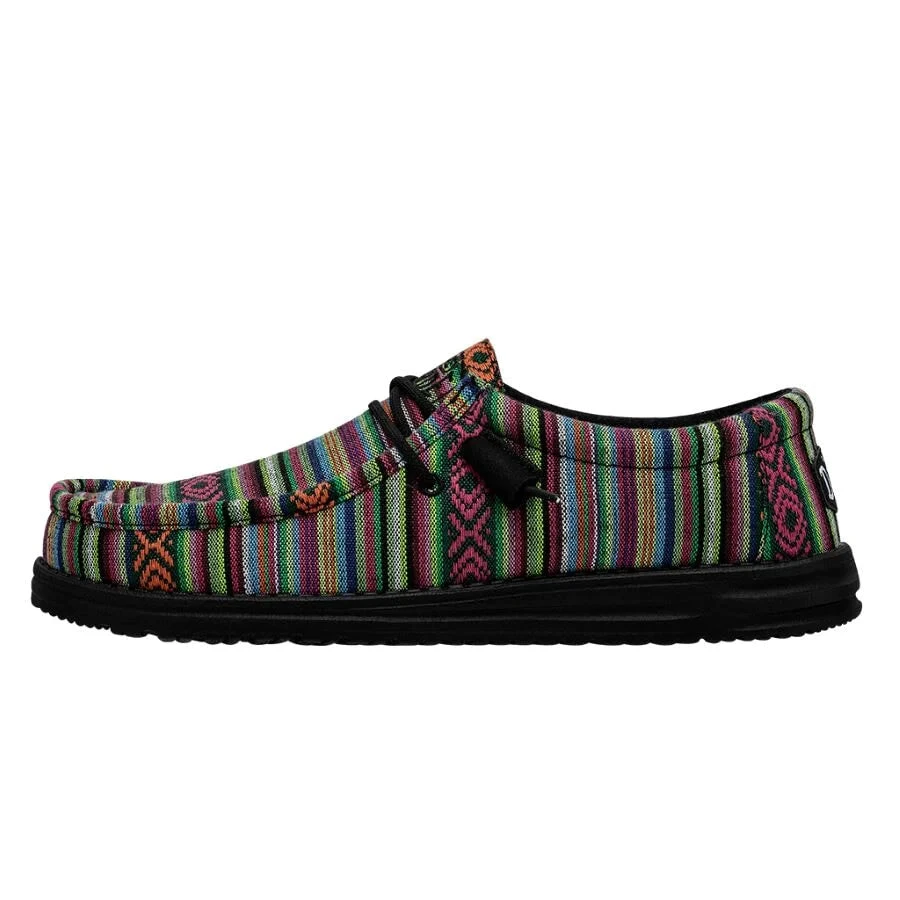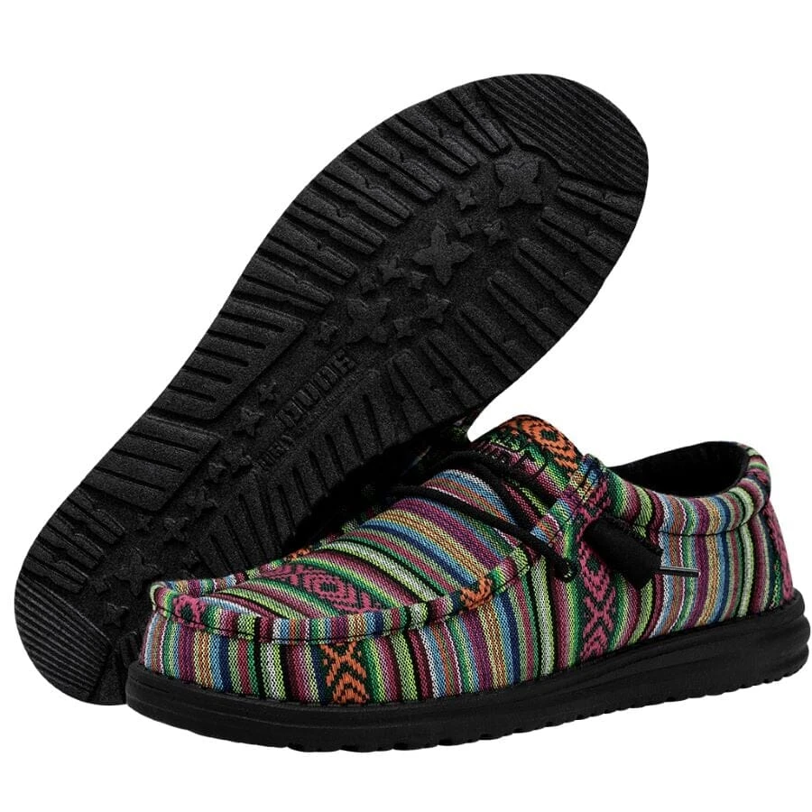 Introducing the Wally Serape collection – inspired by the iconic serape shawl, these go-everywhere mocs are made of a heavy, woven-blend fabric upper that’s more durable than basic cotton but still breathable and lined with a light, cotton-blend lining to keep your feet cool. Finished off with our no-tie, elastic lacing system on an ultralight outsole and a cushioned ankle collar for extra comfort. So easy to slip on and off, so comfy underfoot. Bienvenido, Wally Serape.Â