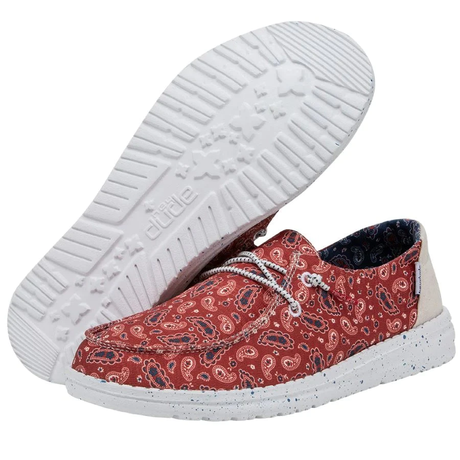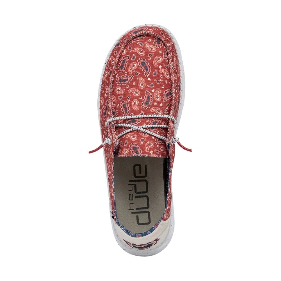 The Wendy Bandana – Patriotic America is a stylish yet functional casual shoe from Hey Dude. Its cool and fun design features stars and stripes and will show off your patriotic style. The lightweight and breathable construction promises comfort and fit, making these shoes perfect for day-to-day wear.