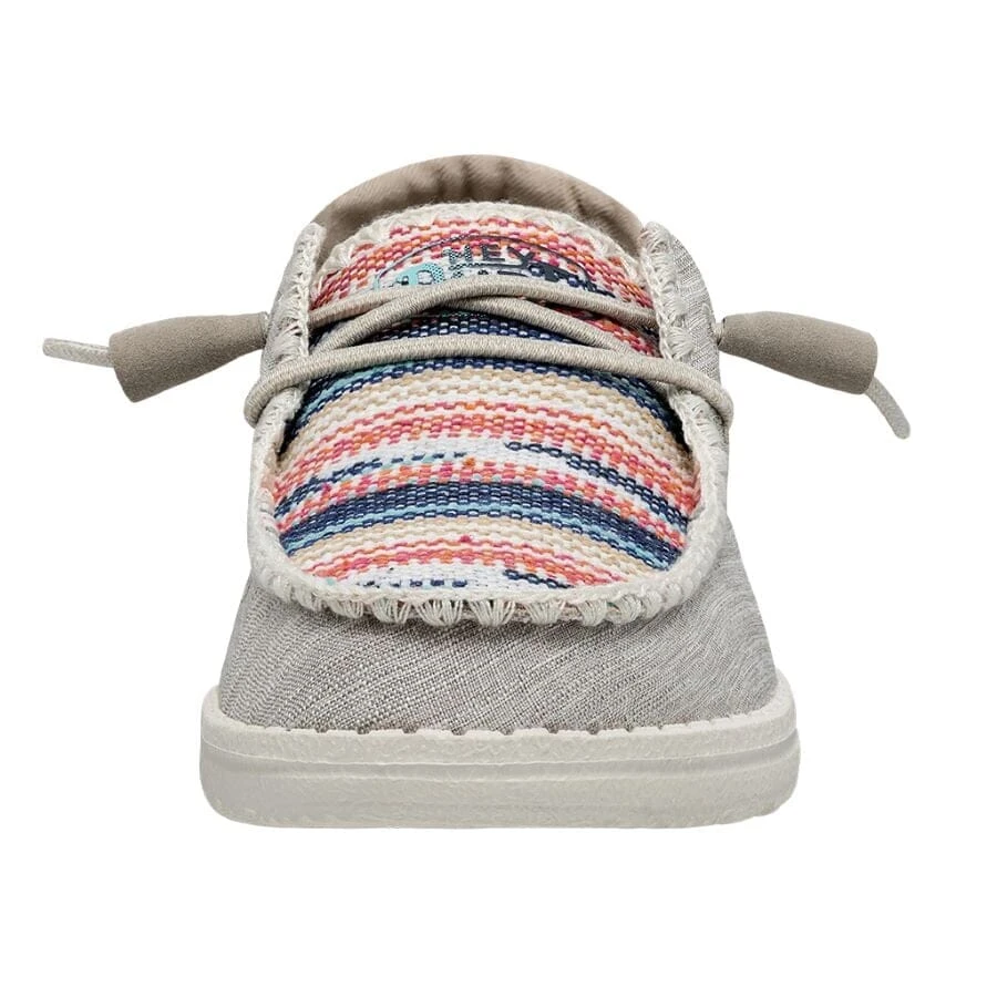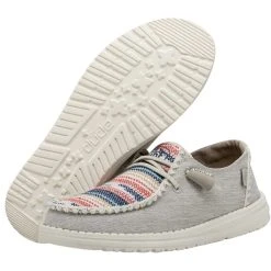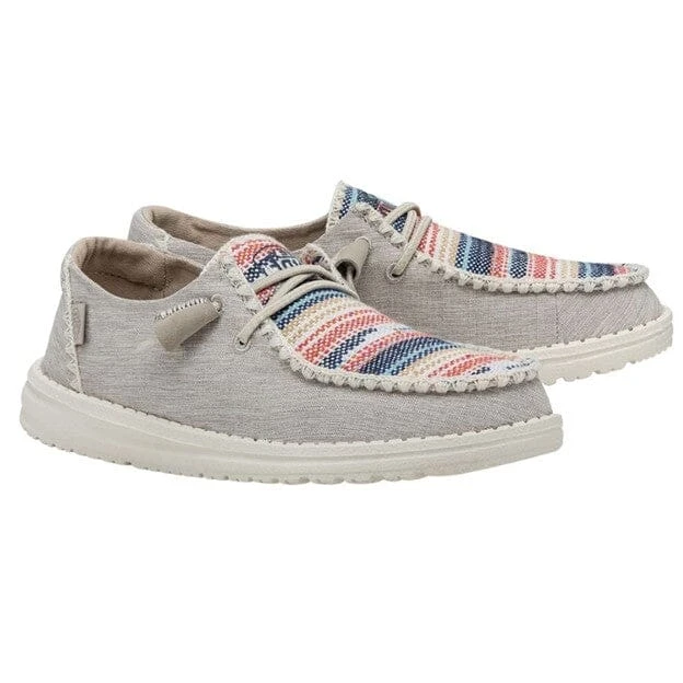 Introducing the Wendy Boho Blanket collection – classic, cool, vintage. Crochet stitching and patterned chambray-woven fabrics uppers come together with all the breathability, durability, and cloud-like HEYDUDE comfort your feet expect. Lined with a light and care-free cotton lining for strides just as easy-going and finished off on an ultralight outsole with no-tie, elastic laces.Â
