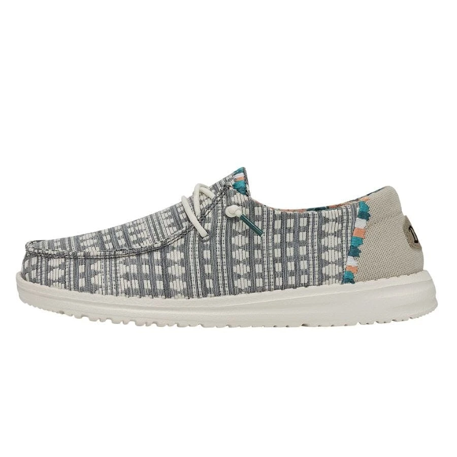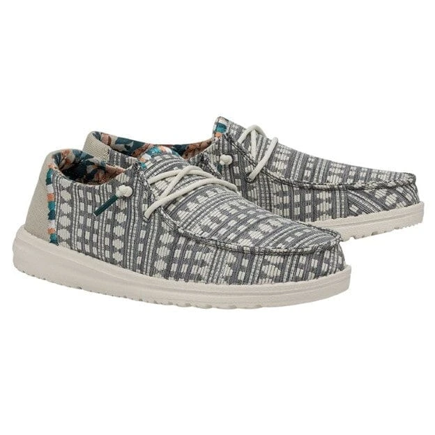 Make a bold statement in the Wendy Boho – Embroidery Grey Hey Dude Women’s Casual Shoe. Featuring an eye-catching embroidered design of geometric shapes, this shoe provides both style and comfort. With a lightweight yet durable construction, the Wendy Boho adds an effortless edge to every outfit. Going for a walk? Ready for a night out? The Wendy Boho is perfect for any occasion!