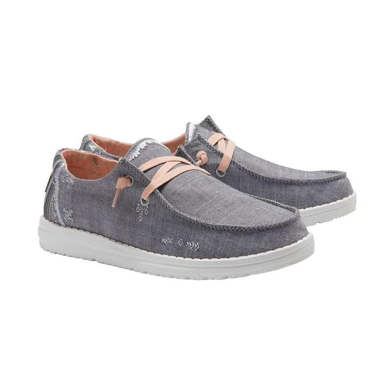 Washed denim, crochet, embroidery, and hand-stitched details come together for a customized look. With our Easy-On elastic lacing system and patented Ultra LIGHT EVA outsole to keep it comfy. So festival ready.Â