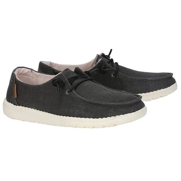 Our most popular moc meets soft chambray-cotton throughout. The Wendy Chambray collection embodies the Hey Dude lifestyle by combining our passion for comfort and quality. Created with a soft, chambray blend upper, finished off with an easy-on elastic lacing system and an ultralight outsole for extra comfort. This design is perfect for all day wear.Â