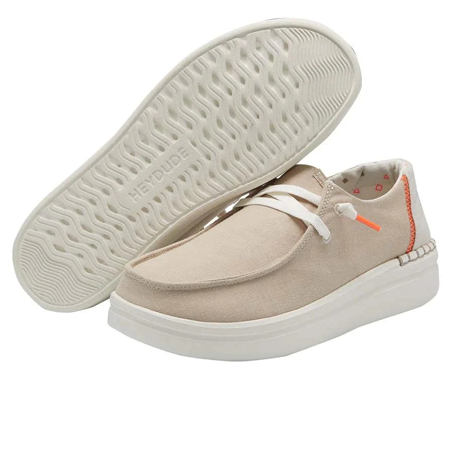 Our iconic low-top moc with a little extra height and a little extra cushion. The Wendy Rise Chambray collection is still super lightweight and comfortable. Built with a textured, breathable chambray-blend upper, an ultralight outsole and designed with our easy-on system featuring no-tie elastic laces. Finished off with hand-stitched details at the heel.Â