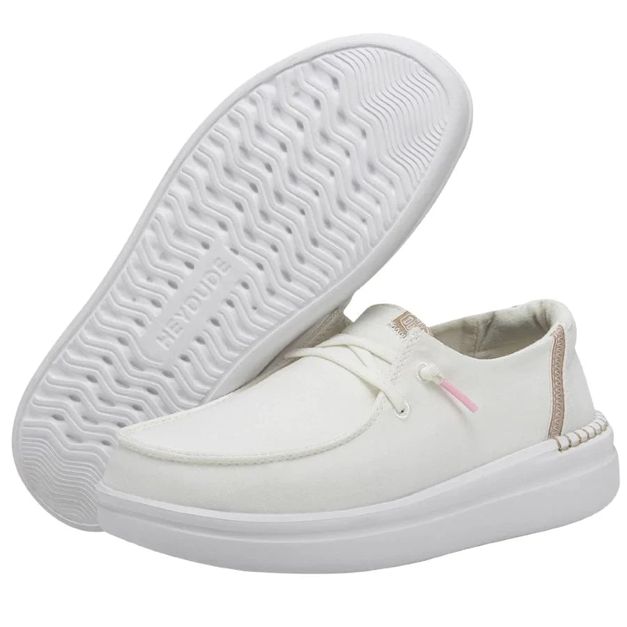 Step out in style with the Wendy Rise Sparkle White shoes from Hey Dude. With a classic white color, subtle sparkles, and Hey Dude’s lightweight design, you’ll be able to look great without compromising on comfort. Add a little sparkle to your wardrobe today.