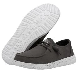 Introduce effortless style to any outfit with Wendy Slub Canvas shoes. Featuring a unique dark grey look, classic Hey Dude design, and the perfect blend of comfort and style, these shoes will give your wardrobe an effortless cool look. What are you waiting for? Step into the trend with Wendy Slub Canvas!