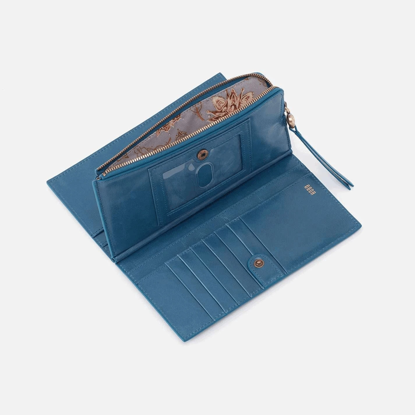 - Interior: Center zip compartment, ID holder, 4 slip pockets and 7 credit card slots