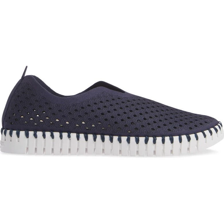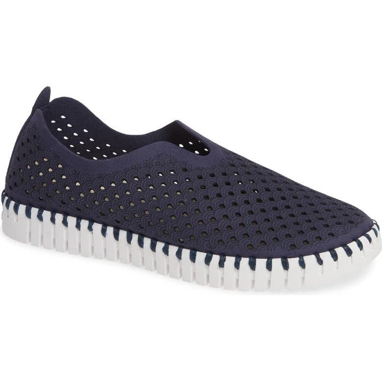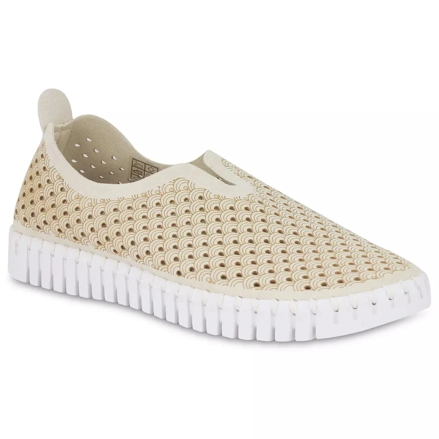 Enjoy life on-the-go with the slip-on Tulip 139 from Ilse Jacobsen®. Scalloped embossing frames all-over teardrop perforations on the upper of a super-comfortable slip-on sneaker that’s whipstitched to a flexible rubber sole.