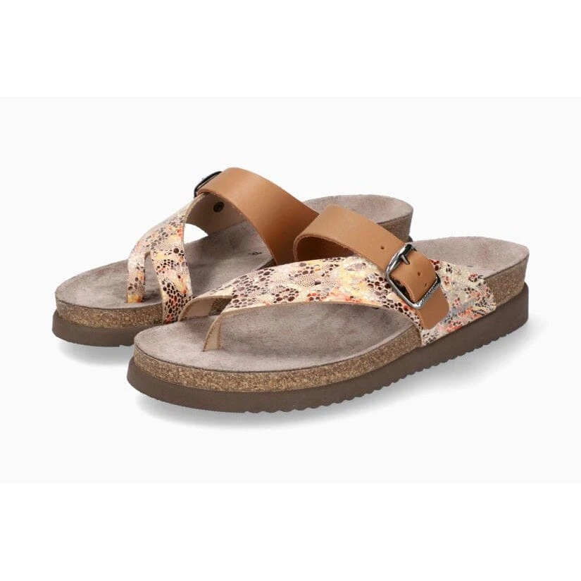 MEPHISTO HELEN MIX | Women Cork Sandals Beige Leather Fancy Printing. This marvelously lightweight ladies’ toe post sandal, with its relaxed look, promotes a perfect sensation of well-being. The unique SOFT-AIR technology, integrated in the cork midsole, guarantees an effortless walk. The AIR-RELAX technology respects the anatomy of the foot with a cork sole to prevent fallen arches. Its strap is adjustable thanks to its buckle fastening.