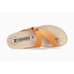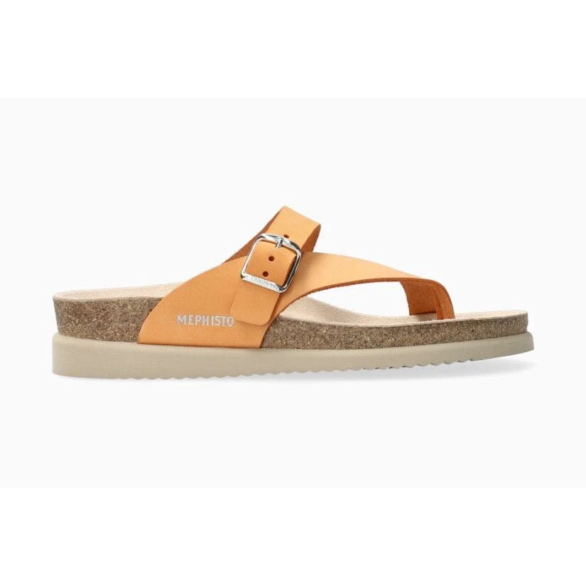 MEPHISTO HELEN | Women Cork Sandals Orange Leather Nubuck. This marvelously lightweight ladies’ toe post sandal, with its relaxed look, promotes a perfect sensation of well-being. The unique SOFT-AIR technology, integrated in the cork midsole, guarantees an effortless walk. The AIR-RELAX technology respects the anatomy of the foot to prevent fallen arches. Adjustable strap with buckle fastening.