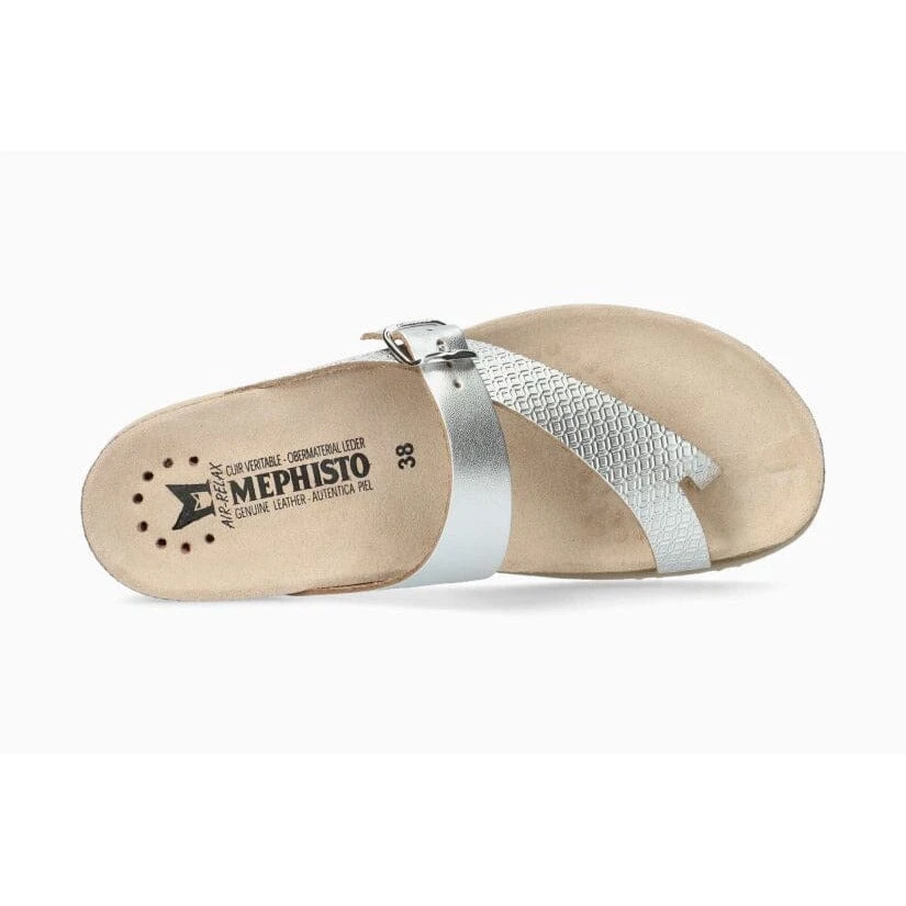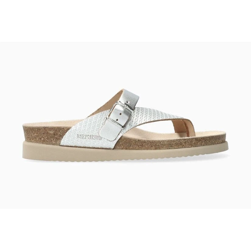 MEPHISTO HELEN MIX | Women Cork Sandals Metallic Leather Metallic Grainy. This marvelously lightweight ladies’ toe post sandal, with its relaxed look, promotes a perfect sensation of well-being. The unique SOFT-AIR technology, integrated in the cork midsole, guarantees an effortless walk. The AIR-RELAX technology respects the anatomy of the foot with a cork sole to prevent fallen arches. Its strap is adjustable thanks to its buckle fastening.
