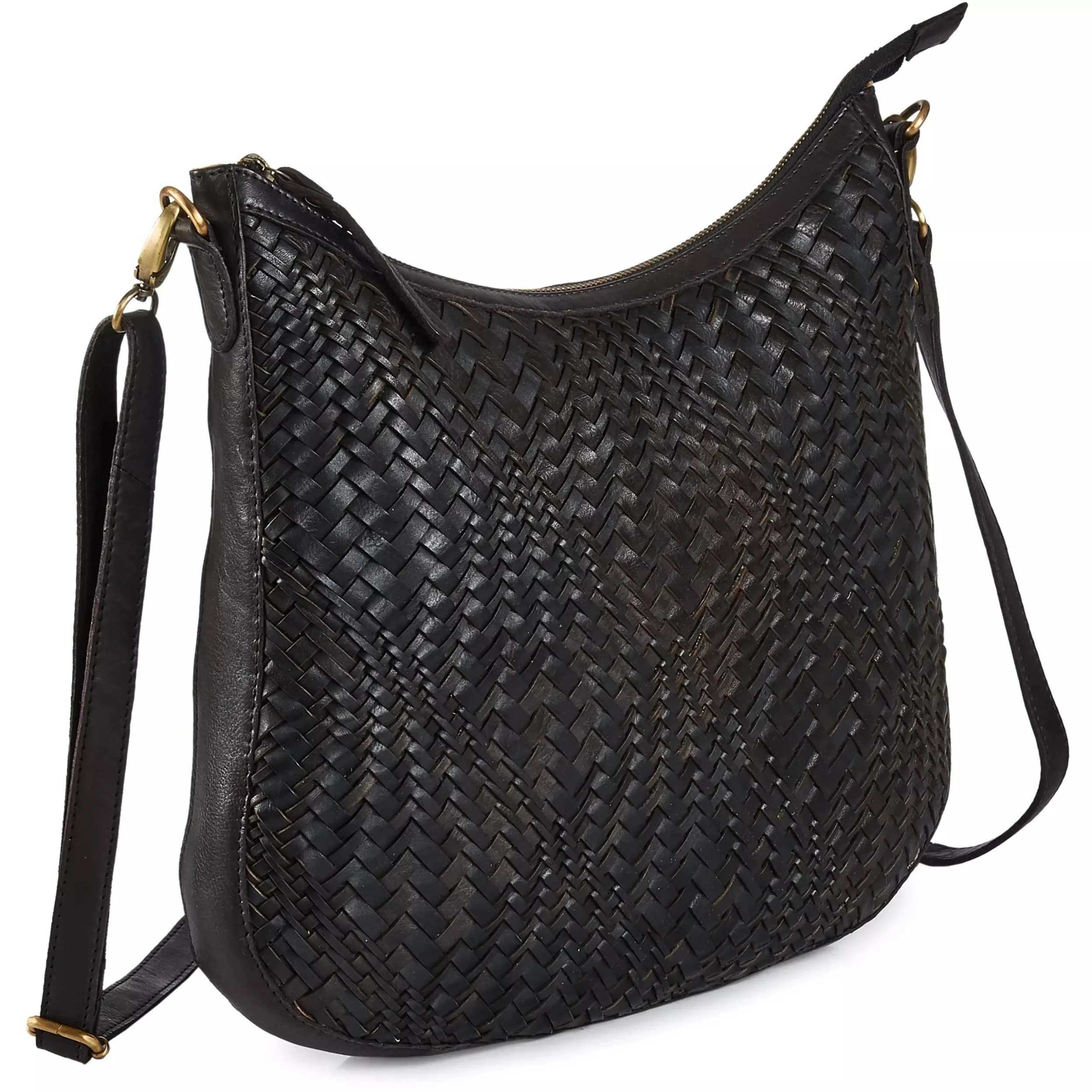 A leather weaving shopping bag with a wave effect is created by using different width strips for weaving the leather on this hand-crafted leather bag. Paolina (style 5001) wallet would be good to carry along.