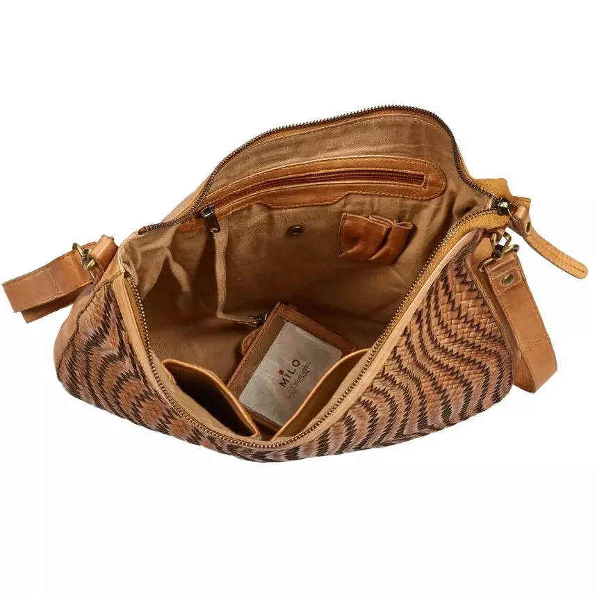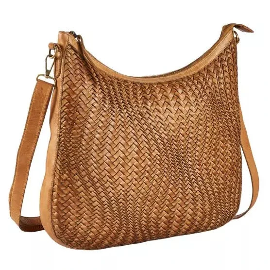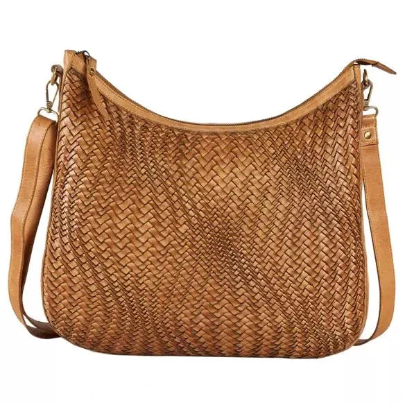 A leather weaving shopping bag with a wave effect is created by using different width strips for weaving the leather on this hand-crafted leather bag. Paolina (style 5001) wallet would be good to carry along.