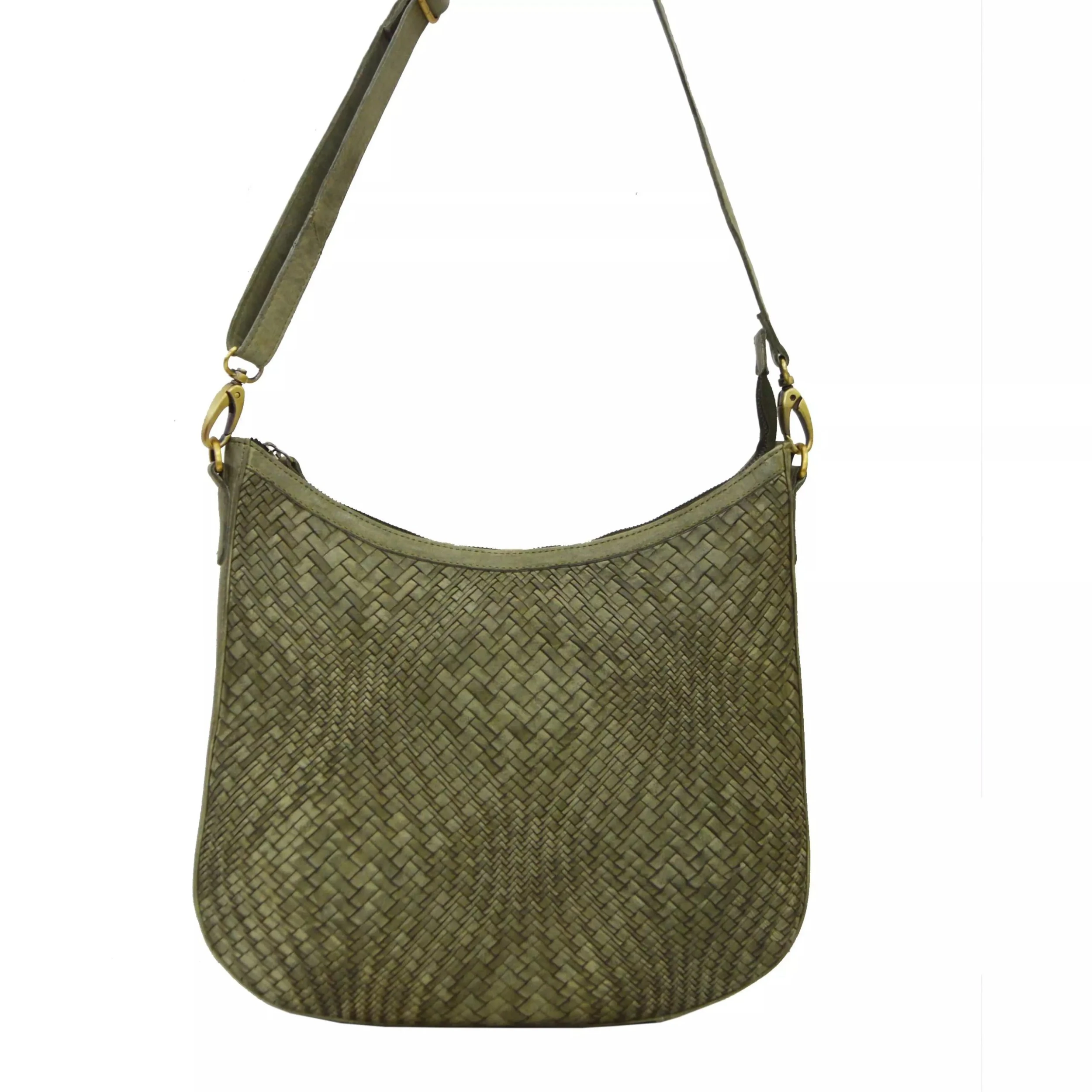 A leather weaving shopping bag with a wave effect is created by using different width strips for weaving the leather on this hand-crafted leather bag. Paolina (style 5001) wallet would be good to carry along.