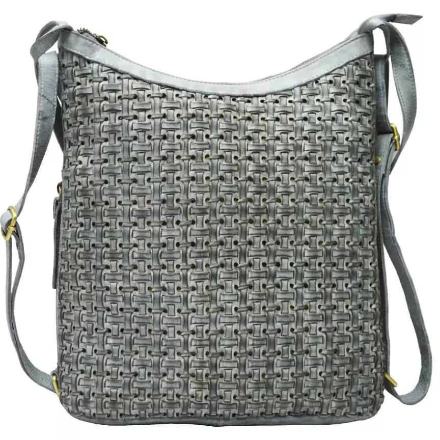 37 X 34 X 10 CM Every inch the stylish travelling companions this multi-functional backpack has compartments for all your day to day needs and can easily convert into a cross body bag. Featuring adjustable shoulder straps and a sophisticated designer leather weave.