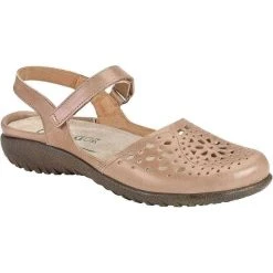 The Arataki is a closed toe sling back shoe with unique cutout designs. This style has a hook and loop closure at the instep. Naot’s removable, anatomic cork & latex footbed is wrapped in pampering suede and molds to the shape of the foot with wear. The Koru Collection features a 1″ polyurethane sole which is extremely lightweight, durable & slip resistant. This collection uses a hand-sewn strobel construction making it strong and extremely flexible.