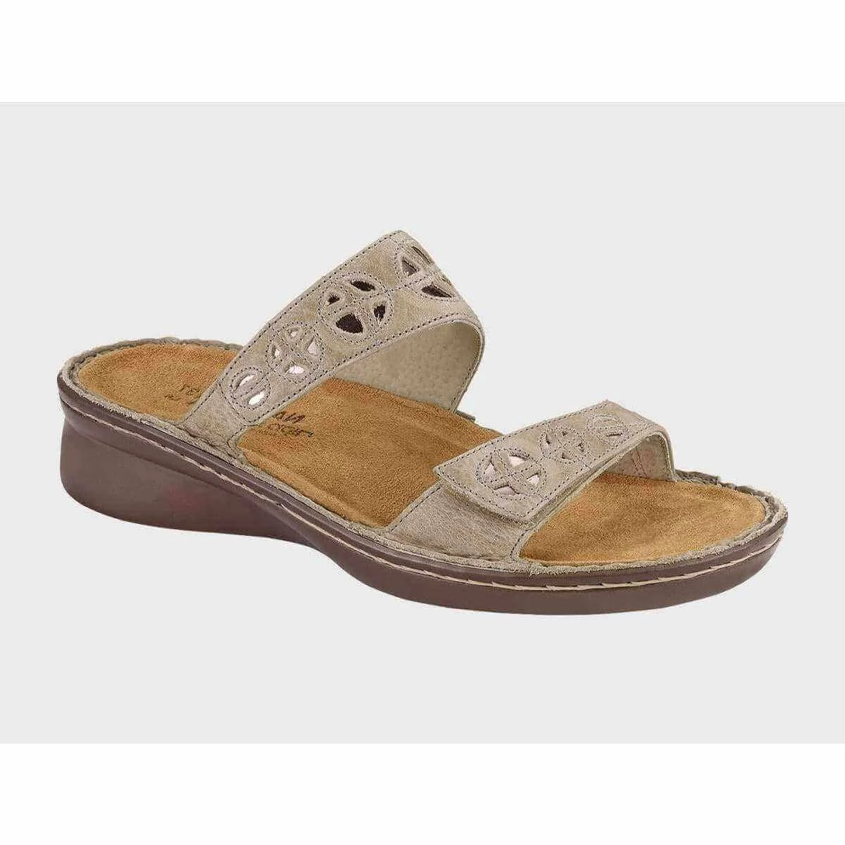The Cornet is a chic slide sandal with stitch designs and contrasting polyurethane underlay. This style features a doible hook and loop for complete adjustability. Naot’s removable, anatomic cork & latex footbed is wrapped in pampering suede and molds to the shape of the foot with wear. The Allegro Collection features a 1.5″ polyurethane sole which is extremely lightweight and durable.