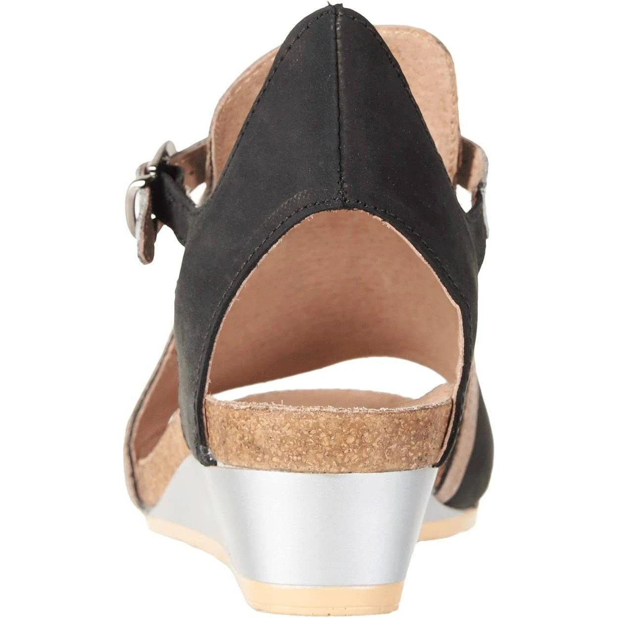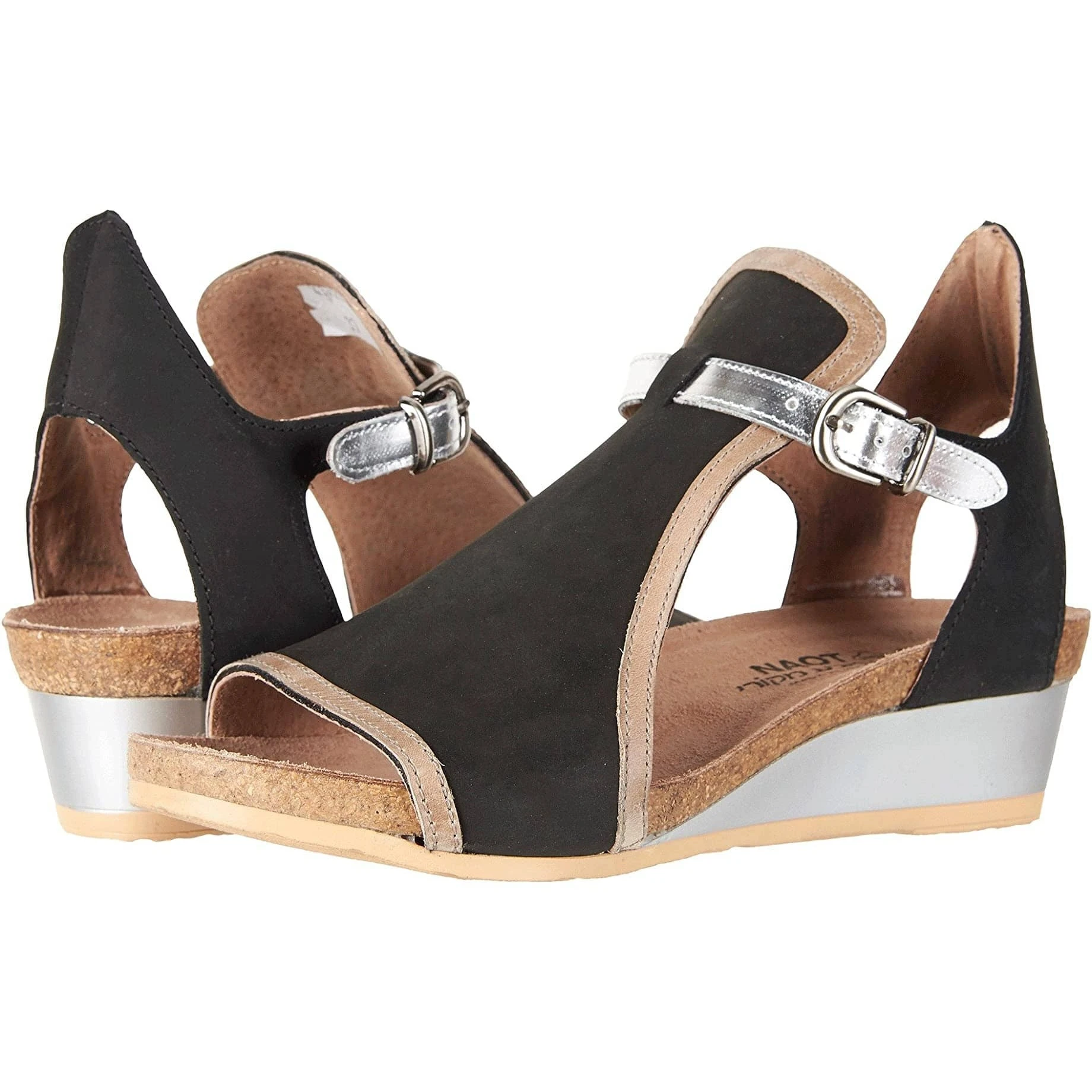 The Fiona is the perfect transitional wedge. This style features a full coverage upper with a contrasting trim. A functioning buckles creates accessibility while the padded heel cup provides comfort. Naot’s anatomic cork & latex footbed is wrapped in a pampering suede and molds to the shape of the foot with wear.
