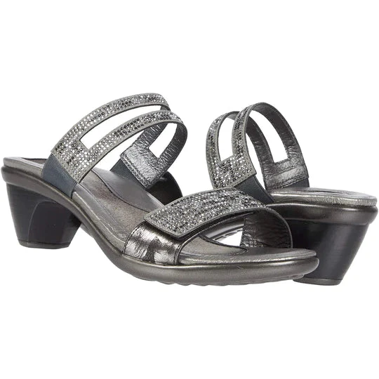 The Temper is a beautiful dress sandal with multi-colored rivet accents. Double gore allows for adjustability creating the perfect fit. Naot’s anatomic cork & latex footbed is wrapped in leather with a microfiber center to prevent slipping and molds to the shape of the foot with wear. The Avantgarde Collection features a TPR sole with a metal shank. This sole offers the look of a 2″ heel without the feel.