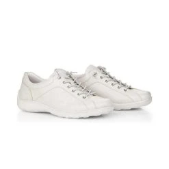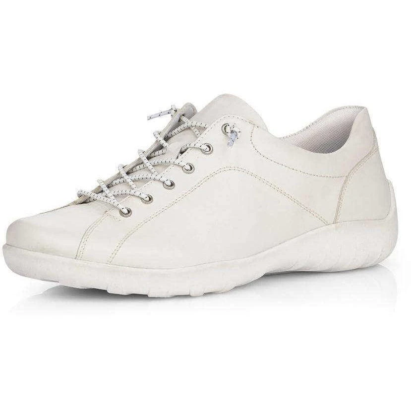 With a feminine cut, the new women’s sneaker R3515-80 by Remonte by Rieker enchants and makes it an indispensable companion for the long-awaited spring/summer season. It also convinces with its quality, both outside and inside. Take, for example, the upper material, which is made of old-white genuine leather, the removable synthetic insole or the exchangeable laces.