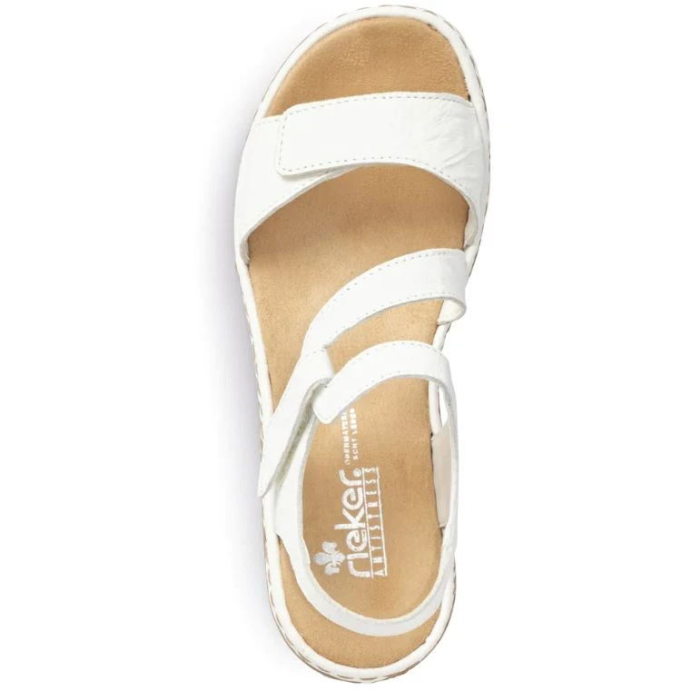 Ladies low sandals in White, with two hook and loop fastening straps.