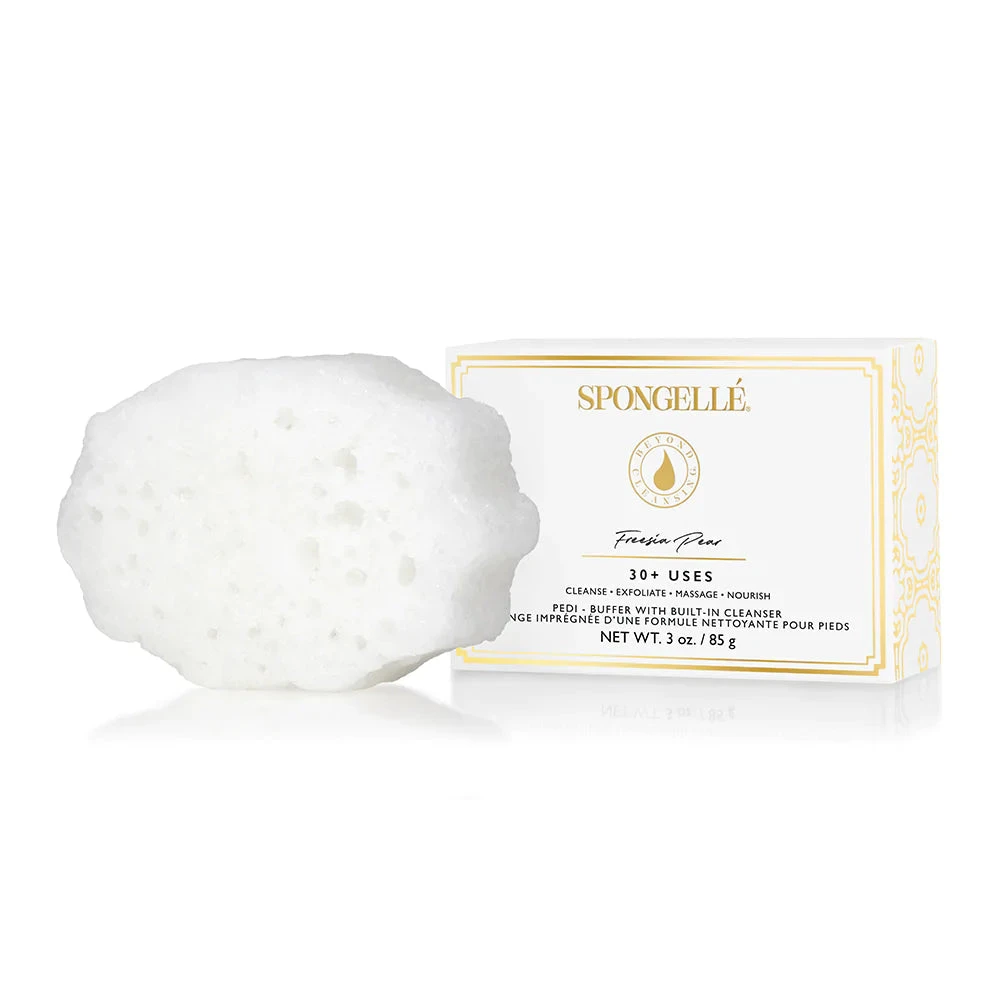 Like the summer wind blowing through your toes, our triple-action pedi-buffer magical soothes with a burst of pear and sparkling grapefruit. Cleanse, massage, and buff away dry soles for professional pedicure results at-home. This juicy, texturized polisher and moisturizing cleanser is infused with lush freesia and a spritz of lemon to add a pep to your step.