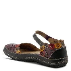 Parisian style to a classic Mary Jane shoe featuring hand painted laser floral cutouts and etching design, adjustable strap with hook and loop fastening and soft padded insole with arch support all on a flat textured comfort outsole.