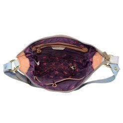Simple yet charming, this practical hobo is ideal for everyday use. Flat handles lay gently over your shoulder making it easy to carry anything from notebooks to cosmetics to daily essentials. Hand painted original artwork. Genuine leather exterior and trim. Top zip entry Inside zippered wall pocket, two multipurpose pockets. Rear zippered pocket, slip in cell pocket. Removable optical case and cosmetic pouch. Handle drop 15.5” to 16.5”