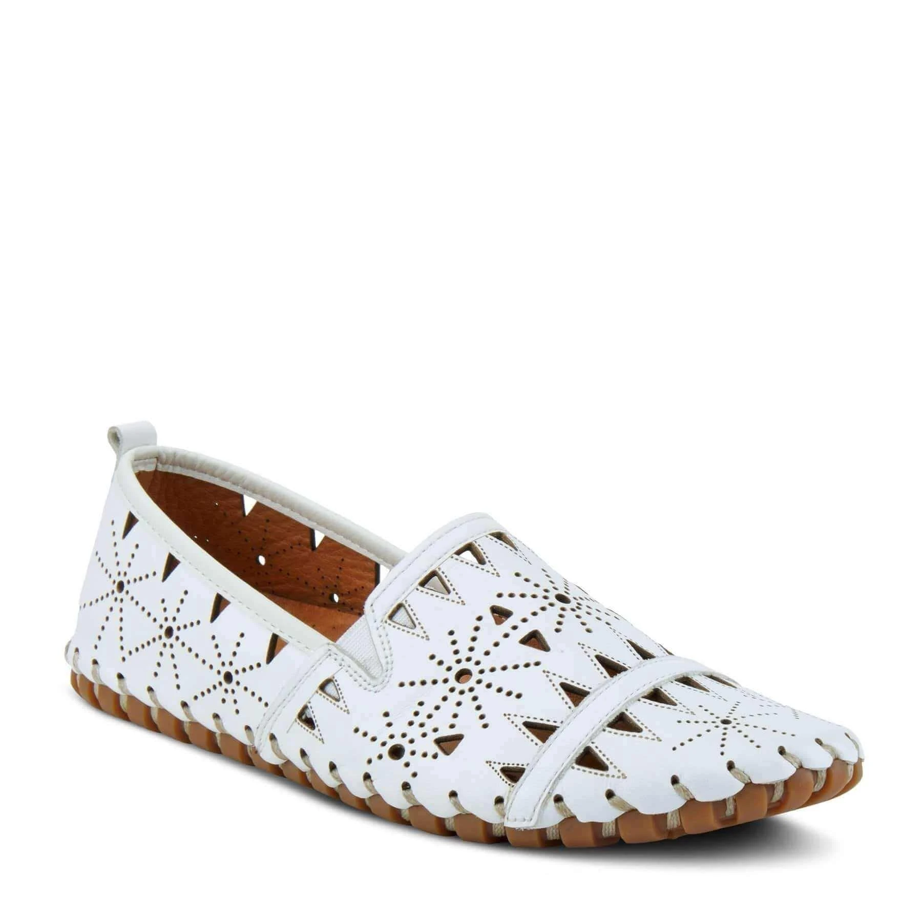 Our Spring Step Fusaro leather slip-on loafer is a European influenced design featuring geometric laser cutouts and etching for a unique modern appeal.